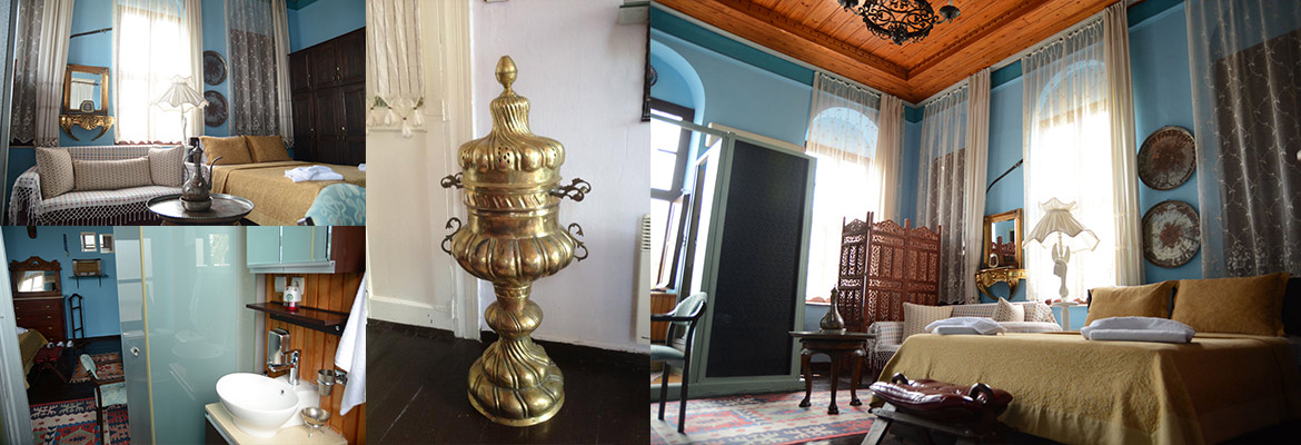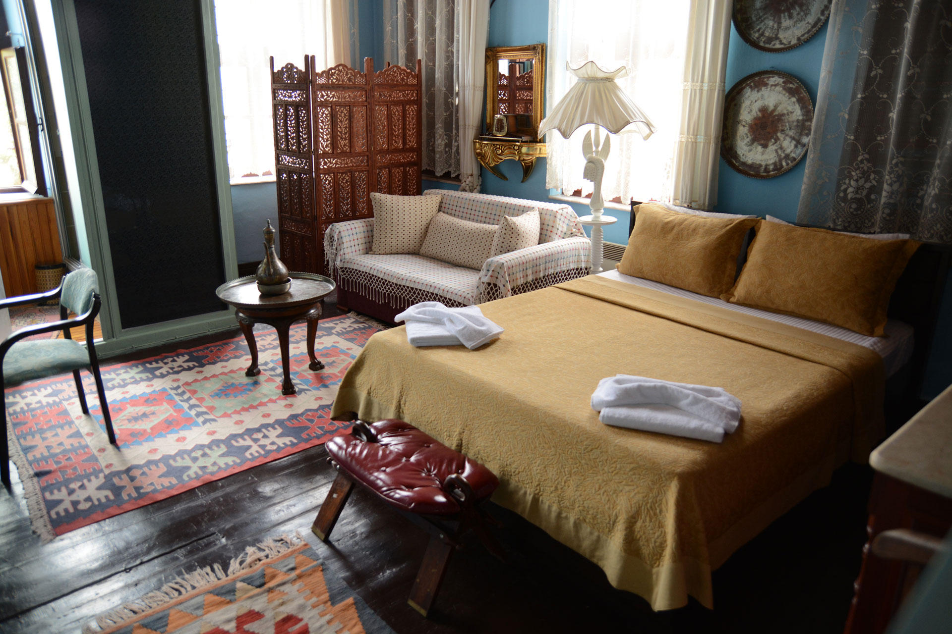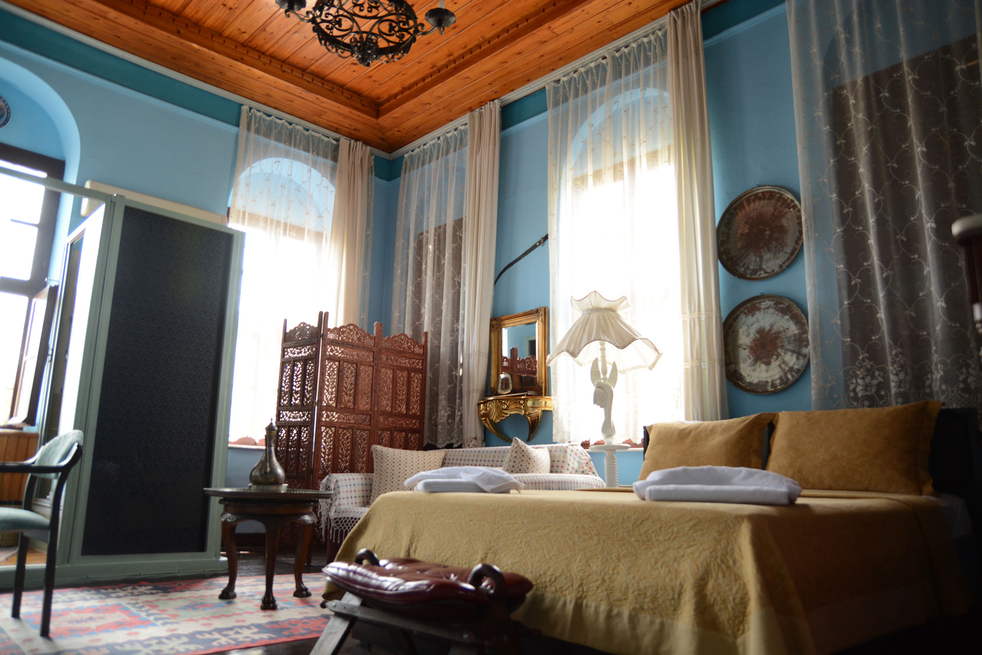 Odamız otelimizin 3.katındadır , Odamız müze ve bahçemizin tarihi doku manzarasıyla taçlandırılmıştır. Bu oda kategorisinde siz değerli konuklarımız için bir odamız mevcuttur Odamızın büyüklüğü takriben 30 m2 dolayındadır, odamız antika eşyalarla özenle dekore edilmiştir, Tavan yüksekliği 4.20 cm 6 adet penceresi mevcuttur, geniş bir alana ve oturma grubuna sahiptir. Banyo tamamen camdan , çok farklı ve orjinaldir Üçüncü misafirin kalmasına uygun ek yatak vardır ( ücretsizdir) Mevcut yatak geniş ve uzundur( king yatak) Mis gibi kokan sabun kokusuyla , el örgüsü perdeleri , işlemeli yatak örtüleri , Sizi yıllar öncesine götüren objeleri ve dekoruyla sizi sabırsızlıkla bekliyoruz.